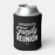 This family reunion can coolie features a sleek black and white design that keeps your beverages cold and your hands dry. The minimalist logo and bold text ensure a modern look that coordinates perfectly with any casual outdoor gathering or celebratory meal.