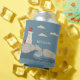 Esta manga personalizada puede envolver o envolver es perfecta para disfrutar de una fría mientras disfruta de las vistas al océano desde su terraza de playa. Tiene un ilustracion de estilo náutico sencillo que da a un faro de color rojo y crema o marfil. El faro se encuentra en una orilla rocosa con olas que caen por debajo y nubes de color crema en el cielo. El gráfico se coloca sobre un fondo azul francés suave.