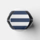 Conmemorar a su boda al estilo de los perritos de la isla con estos refrigeradores de bebidas favoritos de la boda, con un ilustracion de piña amarillo verde y dorado con los nombres de la pareja, fecha de boda y ubicación en azul marino. Un fondo a rayas blancas y navales completa este diseño, perfecto para Hawaii, Newport, bodas isleños o sureños donde reina la piña.