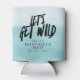 Enfriadores divertidos para una fiesta de despedida de soltera con tema de playa en un diseño de acuarela "Let's get wild". Personalice con el nombre de la futura novia y la ubicación de su fiesta de despedida de soltera, fin de semana o escapada.