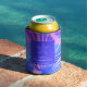 Enfriadores divertidos para una fiesta de despedida de soltera con tema de playa en rosa, morado y azul con diseño de hoja tropical y estrella de mar. Personalice con el nombre de la futura novia y el lugar de su fiesta de despedida de soltera, fin de semana o escapada.
