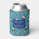 Este elegante y único refrigerador de bebidas de espuma de pájaros flamingo está hecho al estilo Art Deco de los años 20. Los flamencos rosas brillantes descansan sobre un fondo que incluye frondas de helecho en colores llamativos y formas geométricas rectangulares en tonos dorados, todo ello sobre un fondo de azul vintage. Este diseño original y estilizado es perfecto para todo aquel que ame estos animales tropicales y busca un elegante refrigerador de bebidas con un toque retro y vintage de los años 20. Añade fácilmente tu nombre para personalizar. El fondo del refrigerador es azul más oscuro.