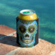 Enfriador De Latas Flor azul de cráneo azucarero