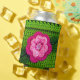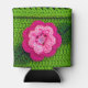 Enfriador De Latas Flor rosa con botón perla Crochet verde claro