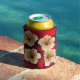 Enfriador De Latas Flores Hibiscus, Patrón De Marfil Rojo.