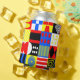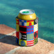 Este refrigerador de bebidas tiene un diseño Bauhaus de colores y formas primarias. Divertido y atrevido.