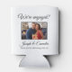 Anuncie su compromiso con este elegante refrigerador de bebidas blanco, personalizado con sus fotos y nombres. Con la alegre frase "¡Estamos comprometidos!" en escritura negra romántica, es el perfecto favor de la fiesta para mantener las bebidas frías y los espíritus altos. Ideal para fiestas de compromiso, duchas o celebraciones casuales, este fresco hace las veces de un conservador significativo para la familia y amigos.