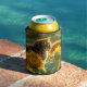 Un lindo gato tabby en un campo de girasoles. Un refrigerador de bebidas encantador o acogedor para tu bebida.