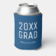 El refrigerador de bebidas de graduación audaz, moderno y de personalizable presenta un texto geométrico en blanco moderno que dice: "YEAR" GRAD con el nombre de la escuela secundaria o la universidad abajo. Personalizar el año y el nombre de la escuela en la barra lateral. Hace un regalo divertido para tu graduado. Puede cambiar el color de fondo azul haciendo clic en "Editar usando la herramienta de diseño" y seleccionando un "color de fondo" en la barra lateral. A continuación, haga clic en "Listo" y en "Añadir al carrito" para comprar su artículo personalizado.