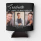 Negro, refrigerador de bebidas de la fiesta de graduación de 3 fotos para el instituto o graduado universitario. El texto dice: "Graduado". Personalice con el nombre, el nombre de la escuela y el año de graduación del graduado. El color de fondo se puede cambiar para que coincida con los colores de la escuela. Comuníquese conmigo para obtener ayuda con sus personalizaciones o para solicitar productos adicionales de correspondencias o coordinación de Zazzle para su fiesta.