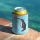 Mantén tus latas de bebidas frescas y tus manos calientes todo el tiempo mientras Chilly el Pingüino te mantiene entretenido. El diseño muestra nuestro pingüino blanco y negro (¡por supuesto!) parado a un lado un globo de conversación con campos de texto de personalizable para tu nombre o leyenda (por defecto "Chill Out, Dude!" en la parte delantera; "¡Me gusta!" en la parte posterior). El fondo es un patrón de mármol azul acuático.