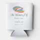 Bonito boda de arcoiris abstracto refrigerador de bebidas con dos hermosos arcos de color sobre su fecha de ceremonia y nombres. Este sencillo y colorido recibimiento es perfecto para una pareja LGBTQ elegante que se casa por la tarde.