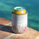 Perfect table decor for an August birthday party. Pink gladiolus is the birth flower for that month. It forms a pretty watercolor bottom border on this floral personalized can cooler. The birthday guest of honor's name, age and birthdate are placed above it using elegant calligraphy and typography. All text is editable.