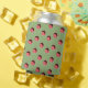Helados rosas con chocolate y cereza sobre fondo verde.
