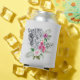 Refrigerador de bebidas con un hermoso ilustracion con un retrato de leopardo gris, negro y blanco. Este encantador animal está rodeado por un ramo de flores tropicales. Elegante, exótico y encantador.