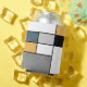 Resumen de arte moderno con rectángulos coloridos (azul marino, gris, negro, amarillo, blanco) en estilo mondriano sobre fondo blanco
