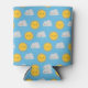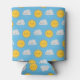 Repeat pattern of happy suns and sad rain clouds on a blue sky background for changeable springtime weather.