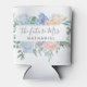 "La futura Sra." enfriador de lata diseñado con flores azules polvorientas y rosas. Personalice el enfriador de lata con el apellido futuro de la novia - ¡perfecto para usar en fiestas de despedida de soltera o despedidas de soltero!
