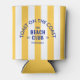 El refrigerador de bebidas Beach Club es perfecto para una excursión de grupo o para reunirse. Bandas de cabaña amarillas con letras vibrantes de club de playa personalizado azul. Personaliza con los detalles de tu viaje a la playa... año y destino de la playa. Perfecto para una playa familiar o de amigos o para una soltera de club de playa o como recuerdo de un viaje pasado. Accesorios de acompañamiento disponibles en Toast On The Coast The Beach Club Yellow Cabana Stripe Collection.