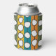 Este refrigerador de bebidas tiene un diseño moderno de mediados de siglo de círculos blancos "deformados" conectados con líneas negras en un campo de tiras verdes, naranjas, turquesas y doradas. Si te gusta el diseño pero prefieres colores diferentes, envíame un mensaje.