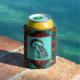 ¡Pon tu bebida favorita en este Refrigerador de bebidas de Lobo "uno de los amigos"! En la Luna se encuentra un Alloramiento de Lobos Tribales del Suroeste...En un fondo turquesa... ¡Rodeado por un borde suroeste en turquesa, Naranja y negro! Este es un diseño de arte original del artista Kerry Miller.