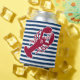 Enfriador De Latas Lobster Rojo Náutico Monograma Banda Blanca Azul