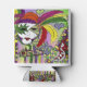 Enfriador De Latas Máscara de plumas del Mardi Gras psicodélico
