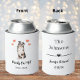 ¡Bebe sobre mí! Celebra tu gran día con este personalizado refrigerador de bebidas boda de perro pastor australiano. Personalice con nombres, fechas y otra información.