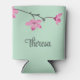 Enfriador De Latas Mint Green personalizada con flores de cerezo rosa