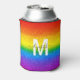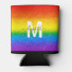 Mantén tus bebidas frescas con este purpurina personalizado y refrigerador de bebidas LGBT glam para mostrar tu apoyo. El diseño rainbow de moda con rayas en purpurina falso incluye tonos rojos, naranjas, amarillos, verdes, azules y morados con un monograma inicial en blanco y un nombre en escritura negra moderna para que usted lo pueda personalizar. ¡Muéstrate tu orgullo!