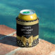 Este elegante diseño de refrigerador de bebidas de cumpleaños presenta un patrón geométrico de oro egipcio con una cinta de arco dorado sobre un fondo negro. Puede personalizar de todo el texto para satisfacer sus necesidades.