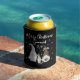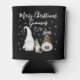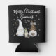 Enjoy Christmas with this cute and modern Christmas gnomes can cooler! The text quote in a modern font is Merry Christmas Gnomies. A family of three festive gnomes are featured, surrounded by snowflakes. Enjoy your cold beverage with this fun can cooler this season!