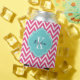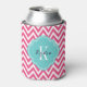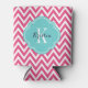 Enfriador De Latas Monograma Chevron rosa caliente y turquesa