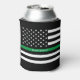 Muestra tu apoyo con este refrigerador de bebidas de bandera estadounidense de fina línea verde delgada blanca y negra. Personalice reemplazando el nombre de la muestra por su propio nombre como un regalo de clase para los militares, guardabosques, oficiales de conservación y patrulla fronteriza. Ideal para días en la playa, picnics y fiestas.