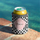Cute trendy monogramed lata o enfriador de botellas con un patrón de estribillo preppy. Personalízalo con un monograma personalizado u otro texto en un marco de quatrefoil de moda. Haga clic en Personalizar para cambiar el texto y los tipos de letra y crear un regalo único para sus damas de novias y fiesta de bodas. Contáctame antes de pedir que se personalizar patrones o diseño para coordinar con cualquier color boda.