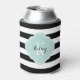 Enfriador De Latas Monograma de franjas de perrito negras y de menta