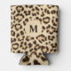 Enfriador De Latas Monograma del patrón de impresión de cuero leopard