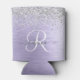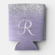 Personaliza fácilmente este diseño refrigerador de bebidas de moda de moda con purpurina espumoso de bonito plateado sobre fondo metálico morado.