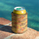 Enfriador De Latas Naranja, Oro, Rectángulos y Círculos Marrones