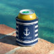 Enfriador De Latas Nautical Anchor Naval Blue Striped Bot Name