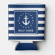 Enfriador De Latas Nautical Anchor Naval Blue Striped Bots Nombre Est
