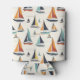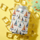 Un velero vela refrigerador de bebidas temático con fondo claro. Lleno de veleros y yates. Un divertido patrón náutico costero.