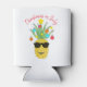 Este divertido Navidad del refrigerador de bebidas de julio tiene una piña amarilla decorada como un árbol de Navidad y llevando gafas de sol! Dice que Navidades en julio en una tipografía roja elegante. Acuarela original © Michèle Davies.
