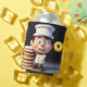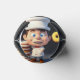 La foto es un feliz panadero 3D animado con una pila de deliciosas nueces heladas