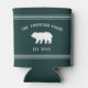 Perfecto para su cabaña o su casa de vacaciones, estos refrigeradores de bebidas geniales y personalizados incluyen su nombre familiar o apodo de casa en un fondo verde cazador, con su año establecido y un ilustracion de oso. La raya de los árboles que se detalla en la parte superior e inferior completa el diseño de una casa de campo rústica.