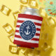 Su nombre personalizado o nombre de barco (Capitán Rank o Texto Personalizado), con un ancla náutica Personalizado, estrellas y franjas sobre un elegante Refrigerador de bebidas rojo y azul.