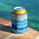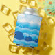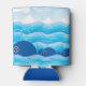 Dulce refrigerador de bebidas costero con un trío de ballenas saliendo de las olas del océano.