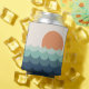Resumen océano azul ondulado al atardecer ilustracion con olas tormentosas azules y decoración solar para todos los que les gusta la naturaleza y elegantes diseños de paisaje veraniego simple.