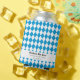 El Refrigerador de bebidas del Oktoberfest personalizó su texto personalizado y su tipografía gótica de estilo medieval. El diseño presenta un patrón de lozenge de diamantes en blanco y azul de Bayern. Ideal para uso personal o promoción de negocios.