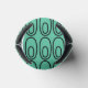 Este refrigerador de bebidas tiene un diseño moderno de mediados de siglo de un pequeño oval dentro de un oval más grande sobre un campo verde menta.